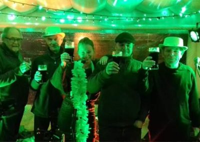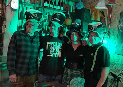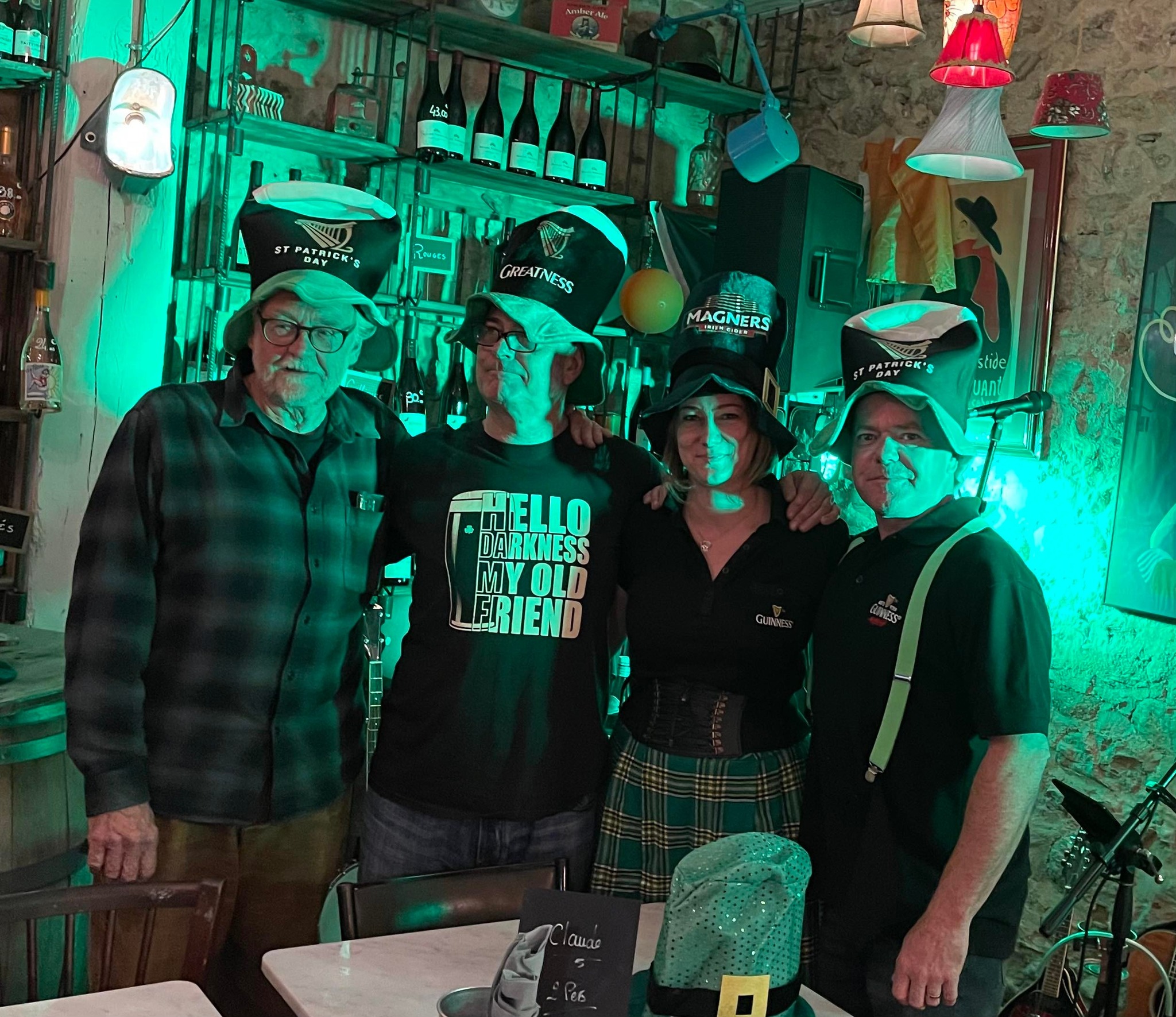 “C’était comme dans un pub irlandais avec une ambiance et des musiques traditionnelles folk celtiques irlandaises. Toute la panoplie des instruments irlandais était entre les mains des musiciens et chanteurs, Mickaël, Trévor, Irène & Lee.” (MAIRIE DE SAINT LAURENT DE LA SALANQUE)