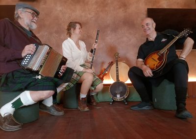 Avec une vaste collection d’instruments, guitare, flûtes, violon, whistles, accordéon, banjo, mandoline, bodhràn, clavier et percussions, ils vous font découvrir la richesse culturelle de ces pays et régions .