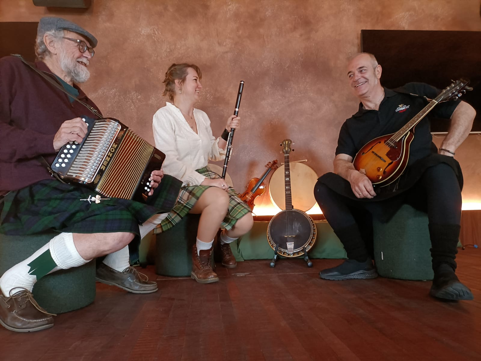Des chansons traditionnelles Irlandaises, sets de Jigs, Reels, Polkas, Slipjigs… des musiques des Highlands d’Ecosse, des compositions personnelles … etc, le tout désormais accompagné en danse!